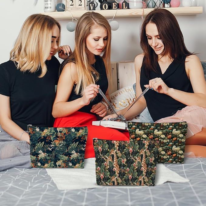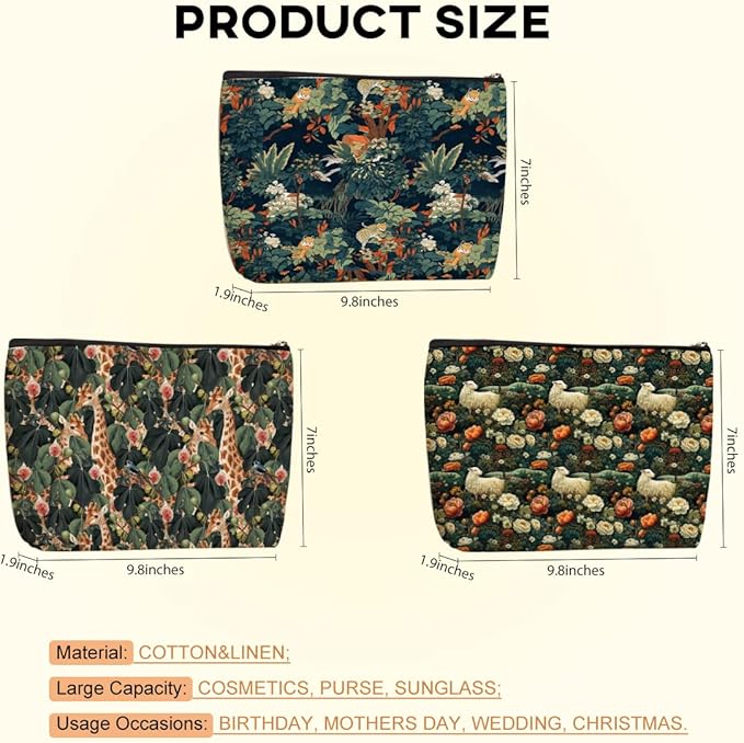 3pcs Cosmetic Bags for Women Makeup Bag, Bachelorette Party Favors Christmas Birthday Friendship Gifts for Women Girls Bestie Travel Toiletry Bag Skin Care Bag, Vintage Forest Giraffe Sheep Tiger