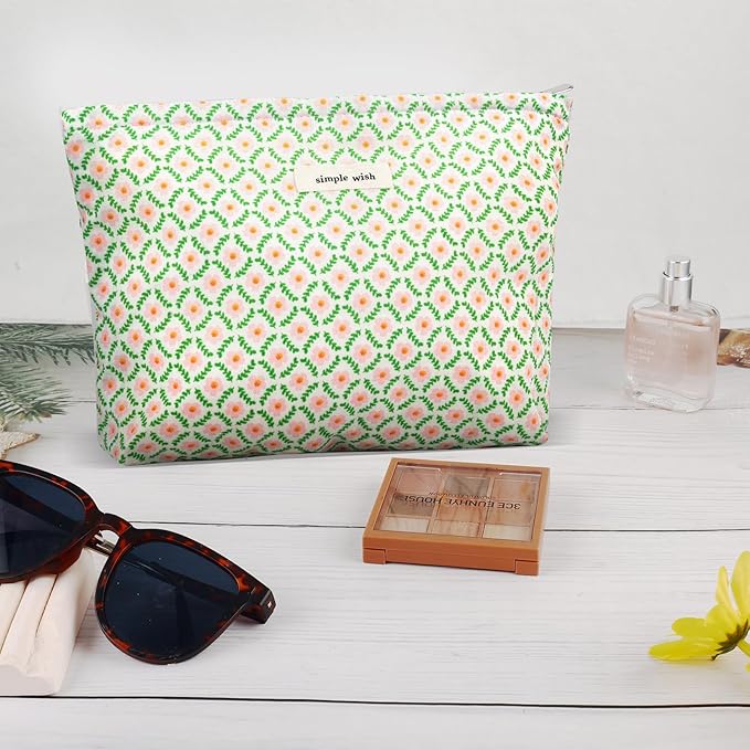 - Spacious Toiletry Bag: Our flower makeup bag measures 10.2*7 inches, easy to carry. This floral cosmetic bag can hold small items such as makeup, skincare products, lipstick, eye shadow, eyebrow brush, etc. The makeup organizer bag has a large capacity and folds up conveniently when not in use