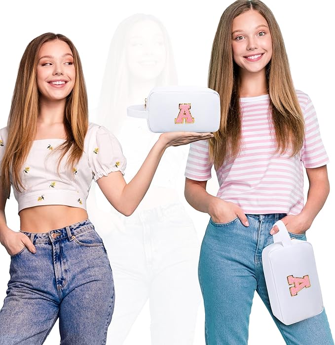 - UNIQUE INITIAL DESIGN: This monogram initial makeup bag with a sewn chenille letter is the perfect custom gift for beauty lovers. Featuring a portable handle and available in 26 letters, it's ideal as a personalized travel makeup bag organizer, adding a unique, stylish touch to your journey!