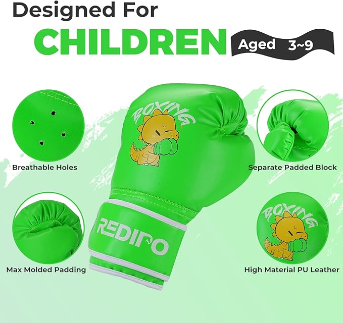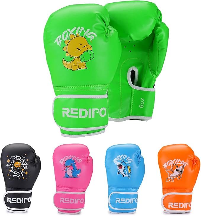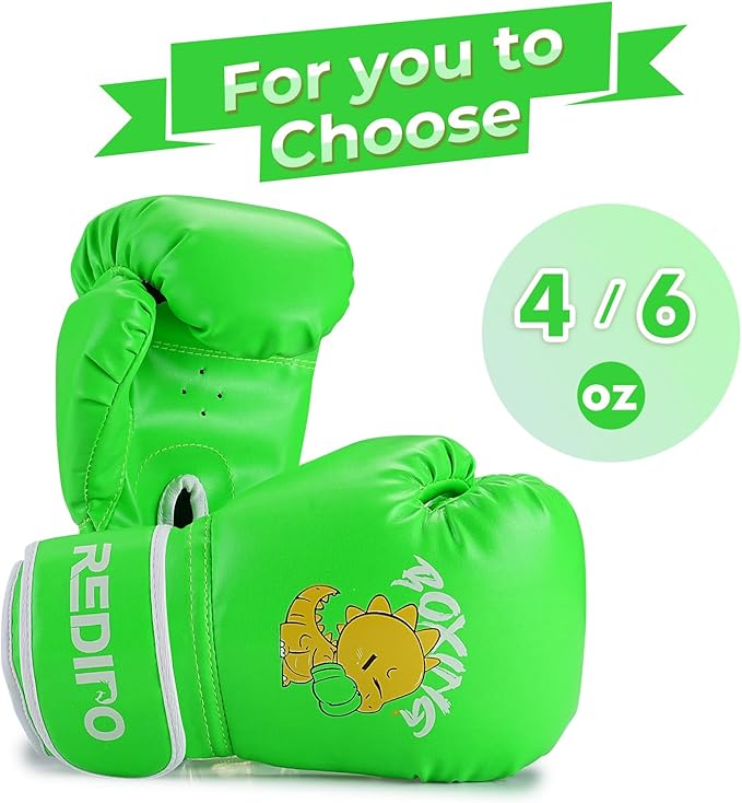 - 【ERGONOMIC DESIGN】-- Ergonomic design with extra-thick protective padding on the knuckles provide ultimate safety in every punch. Redipo 4 & 6 OZ boxing fighting gloves are suitable for kids ages 3-9.