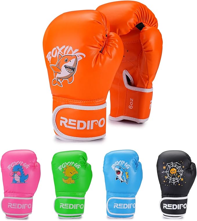 - 【ERGONOMIC DESIGN】-- Ergonomic design with extra-thick protective padding on the knuckles provide ultimate safety in every punch. Redipo 4 & 6 OZ boxing fighting gloves are suitable for kids ages 3-9.