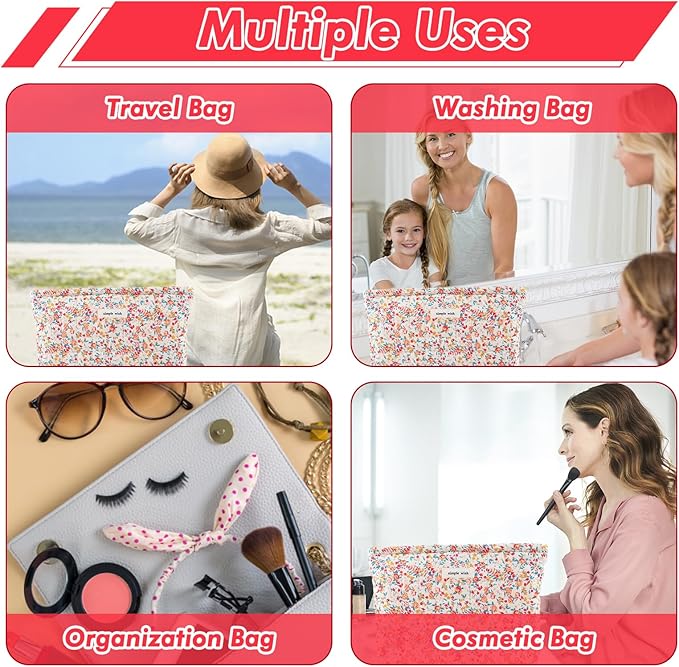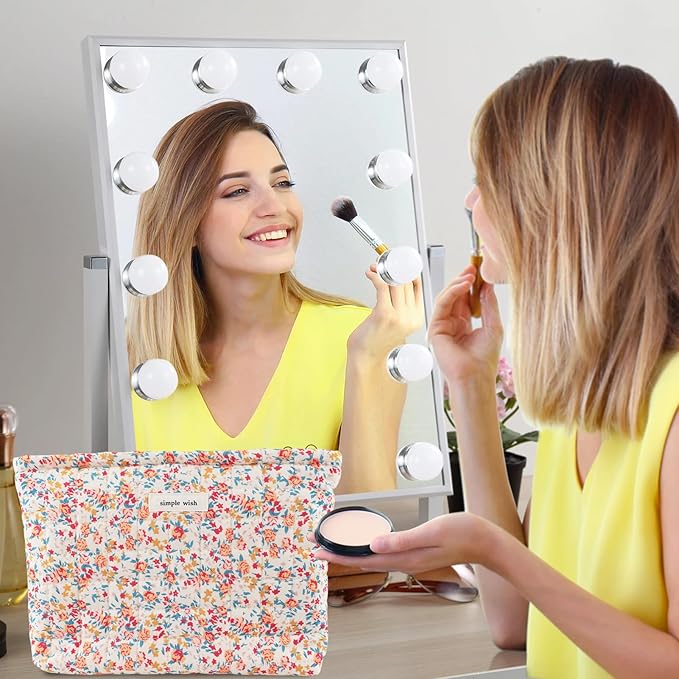 - IDEAL GIFT: This lovely cotton quilted makeup bag is the perfect choice for all your travel, vacation, school, camping, bathroom organization and outdoor activities needs. The travel makeup bag also the ideal gift for your friends, family or anyone you know who would love makeup. This zipper cosmetic bag is the perfect trendy birthday gift for women and your family