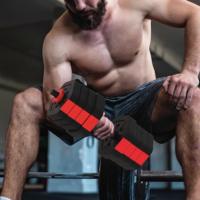 - Robust Hexagonal Design: Vivitory home dumbbell set features a hexagonal shape to prevent rolling and ensure convenient storage. Crafted from durable materials like polyethylene, EVA resin, and a cement mixture, it's sturdy and floor-friendly. The foam-covered connecting rod minimizes neck strain, and the non-slip rubber-coated handle offers a secure grip, making it the perfect home workout partner
