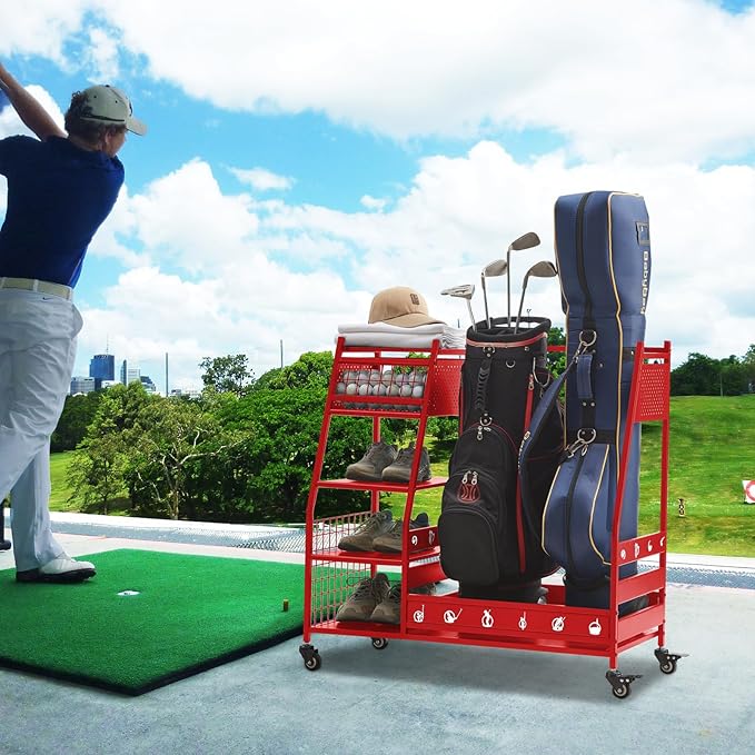 - Multi Occasions: Our golf bag storage can organize almost all your golf accessories, keep your sports and golf equipment in one place, say goodbye to cluttered garages, basements, homes, yoga studios, golf clubs, athletic departments, and storage rooms that are easy to access and space-saving. Christmas is coming up, this superior quality uniquely designed golf rack is the ideal gift for your boyfriend, husband or friends.