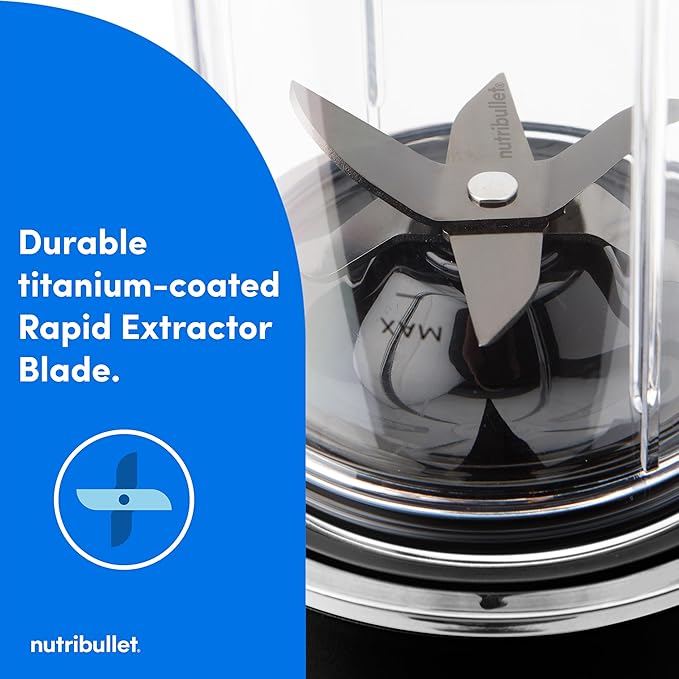 - The Rapid Extractor Blade is equipped with a stainless-steel platform and titanium coating to increase longevity and reduce blending time. Each blade comes with a 5-year limited warranty (visit nutribullet.com/warranty for details).