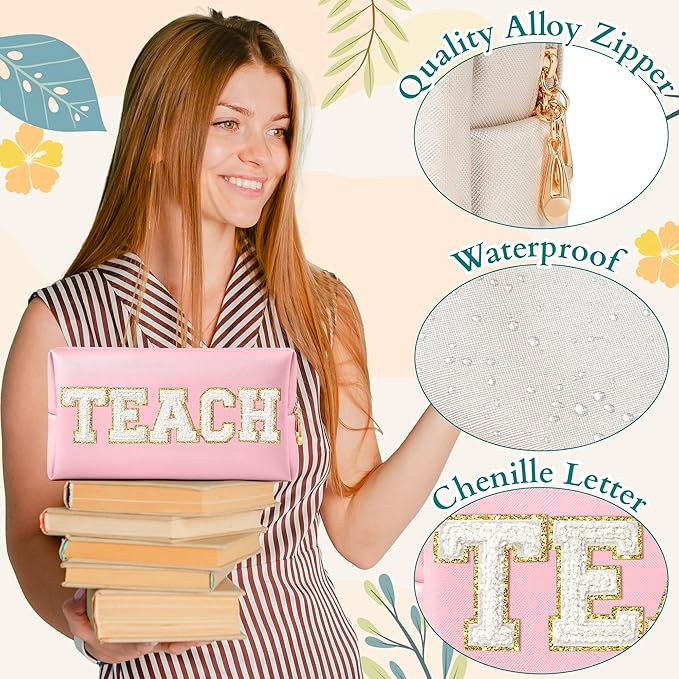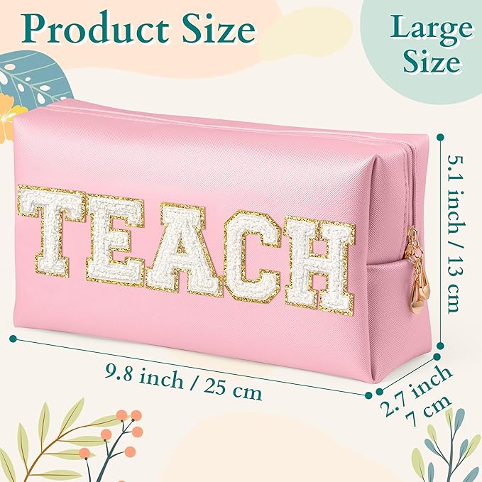 - TEACH Chenille Letter: Embrace your role as an educator with pride. This makeup bag features a TEACH chenille letter patch, showcasing your commitment to teaching and education.