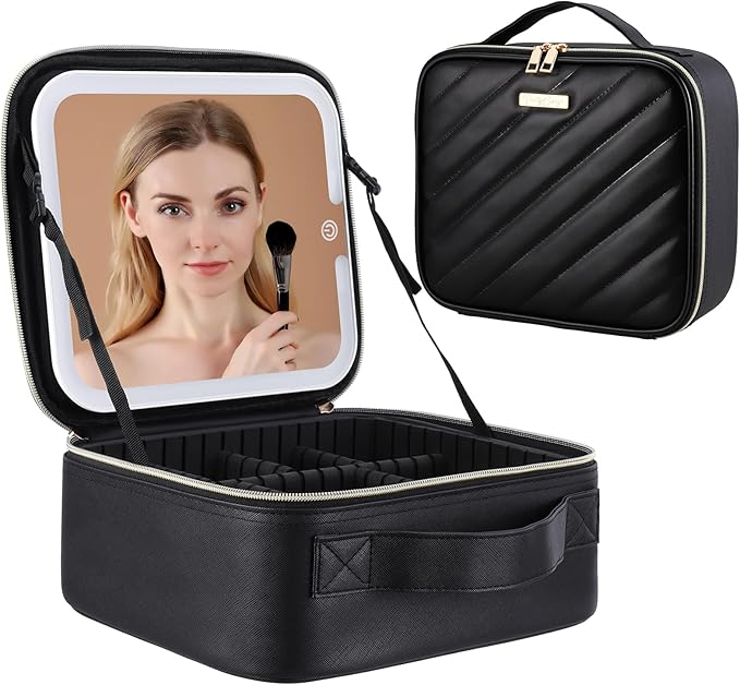 - 【Versatile MAKEUP BAG】Equipped detachable and rechargeable LED mirror-Tricolor Setting.Multi-Function Makeup Train Case that's made of Superior PU leather and Nylon materials-Waterproof & Durable & Easy to clean.Access easily with a double-way metal zipper. Whatever is used for travel or business trips, you can effortlessly carry it without any burden.
