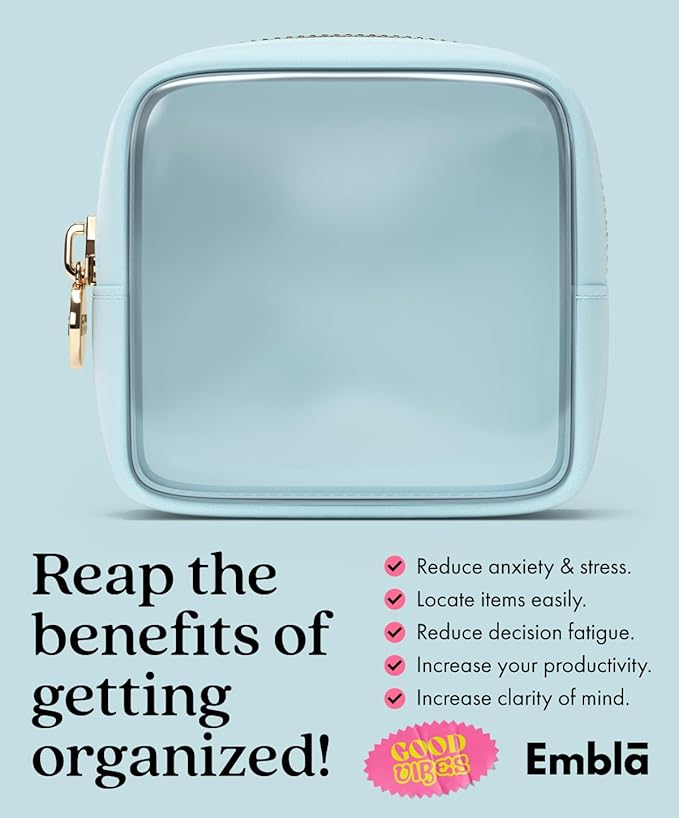 - EMBLA, TRUSTED BY THOUSANDS - Join our huge community who all rave about the superior quality of our products. Looking for a large makeup bag for organization, a small makeup bag for purse or super cute travel pouches? you're in the right place! These bags also make for a great gift for birthdays, bridesmaids, Valentines Day, Mother’s day, Christmas, teacher appreciation and other special occasions.