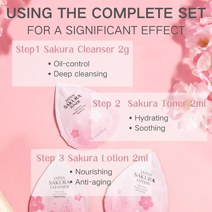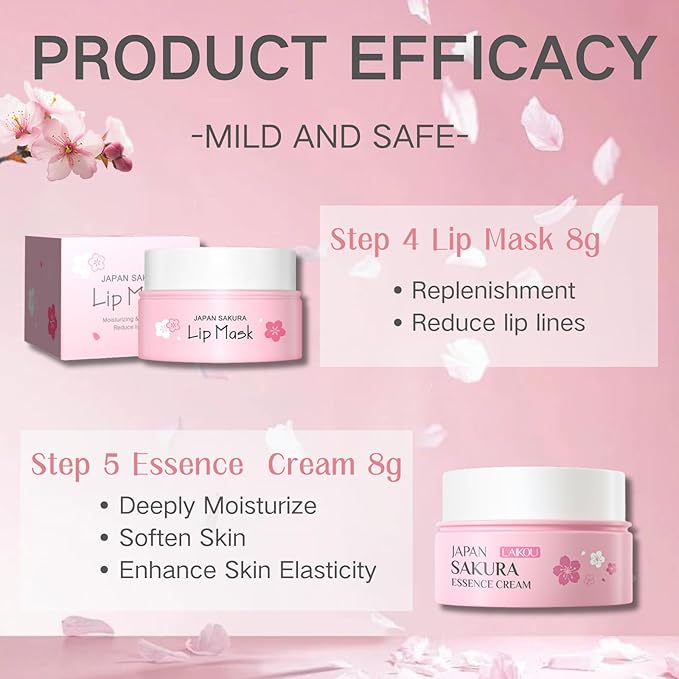 - 19PCS SKINCARE SET: This skincare set easter gifts for teens includes travel size face wash, toner, lotion, serum, lip mask, sunscreen and essence cream. For ease of travel, our sakura skincare kits for women also comes with a makeup bag, so you don't have to worry about skincare when live out