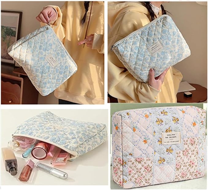- COTTON QUILTED MAKEUP BAGS: You will receive the cute makeup bag that meet your usage and replacement requirements for different occasions.size for quilted makeup bag: 9.7x7.2x2.8 inches.