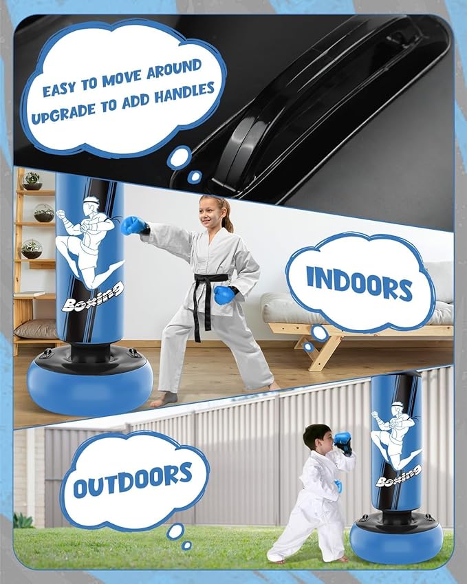 - Convenient Handles: Enhanced with user-friendly handles on both sides, our kids punch bag offers easy mobility and durability, extending its lifespan and saving you money.
