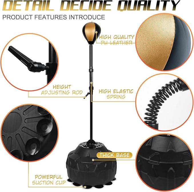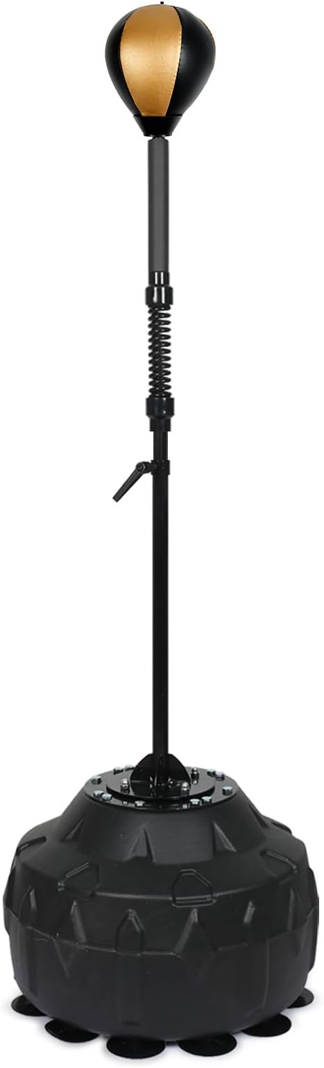 Standing Reflex Speed Bag with Thick Base, Adjustable Height & Reinforced Spring (Golden Black)