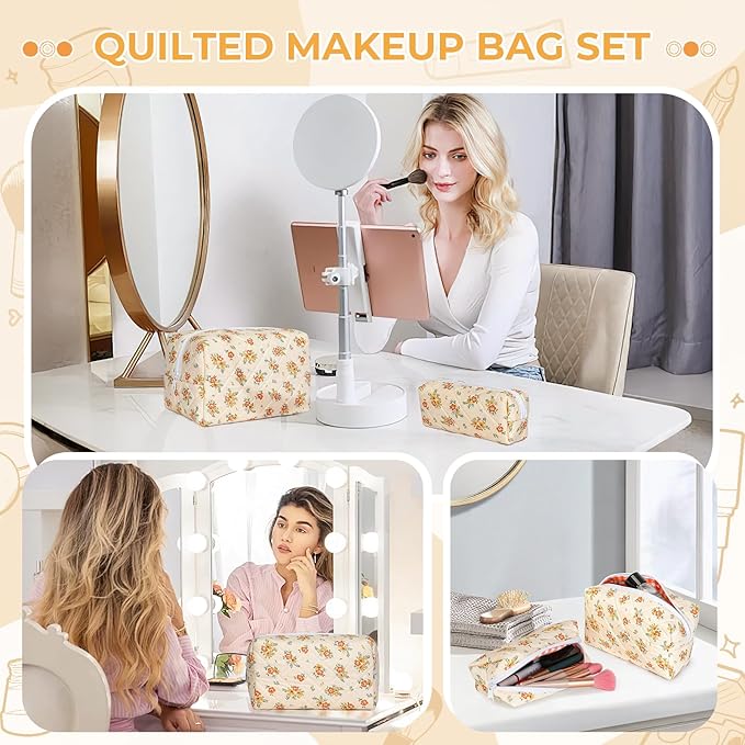 - Perfect Gift:Quilted makeup bag set is the perfect gift for friends, girlfriends, bridesmaids, family members, bridesmaids and coworkers. Whether it's a birthday, holiday or special anniversary, its beautiful design and practicality will surprise the recipient. The unique floral pattern and high-grade cotton material make each makeup bag look special and exquisite, making this gift more thoughtful and tasteful.