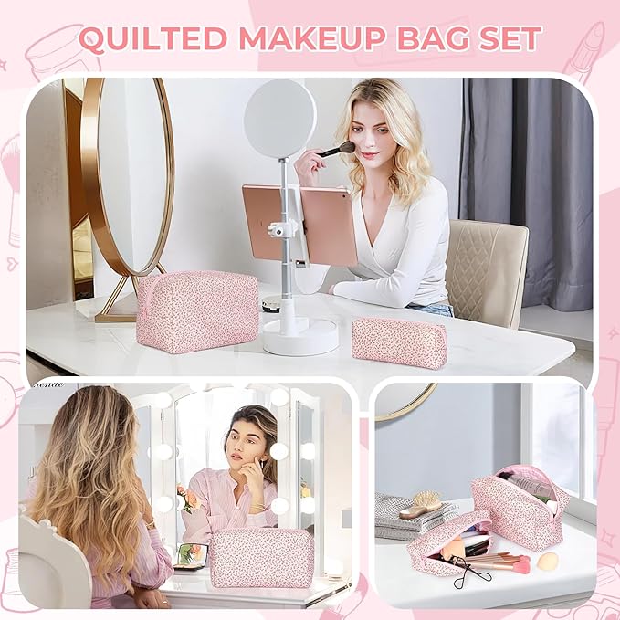 - Multi-Purpose:In addition to being a quilted makeup bag, this set is also versatile and can be used as a travel toiletry bag, jewelry organizer, stationery organizer or craft bag. It can organize skin care products, toiletries, makeup brushes, electronics or office. Its flexible use makes each bag meet your needs in different scenarios, whether you are at home or traveling, you can easily deal with various storage needs.