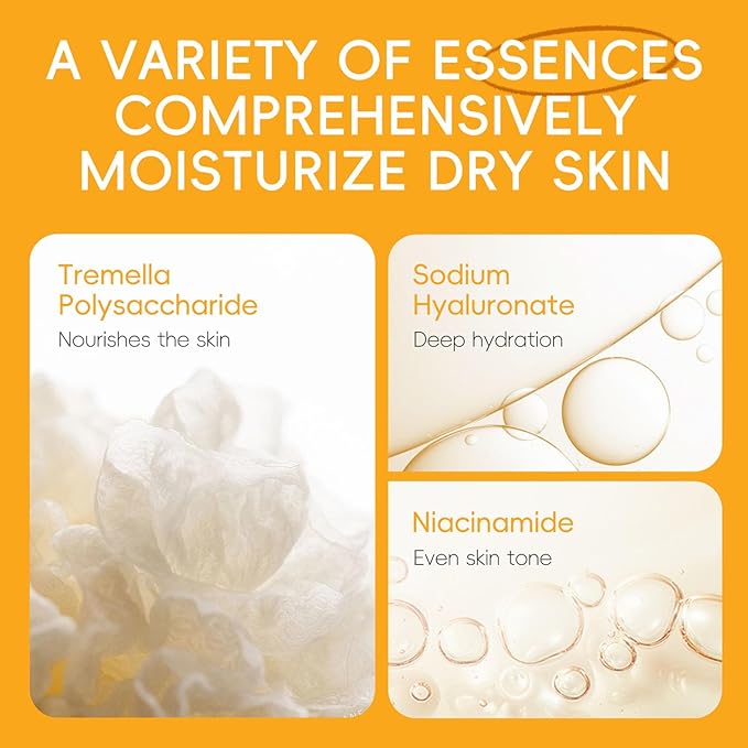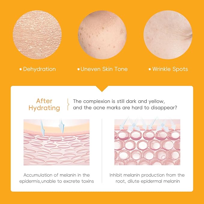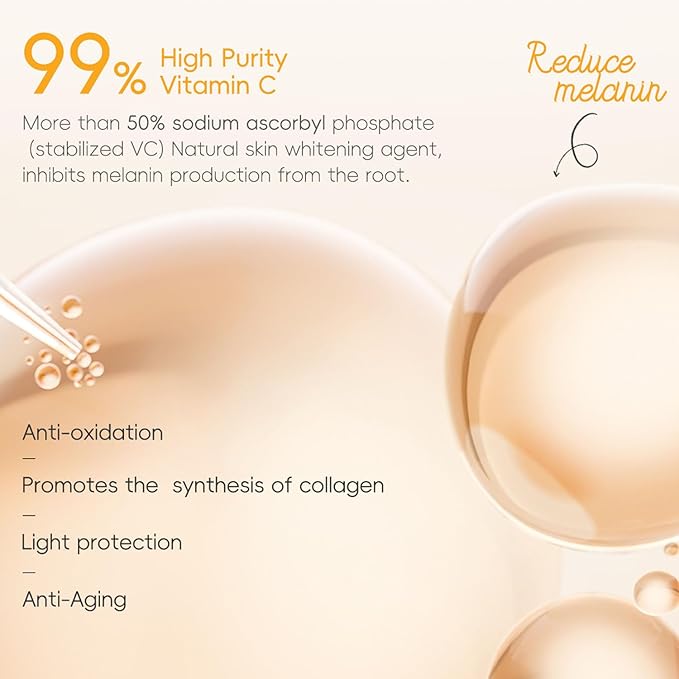 - Natural VC ingredients brighten the skin tone, increase skin elasticity, and balance the water and oil content of the skin. Contains a variety of natural plant extracts, deeply moisturizes and moisturizes, improves the skin's water-locking ability, effectively penetrates the skin, forms a natural protective barrier, and repairs damaged skin. VC ingredients can also prevent pigmentation, chloasma, and freckles.