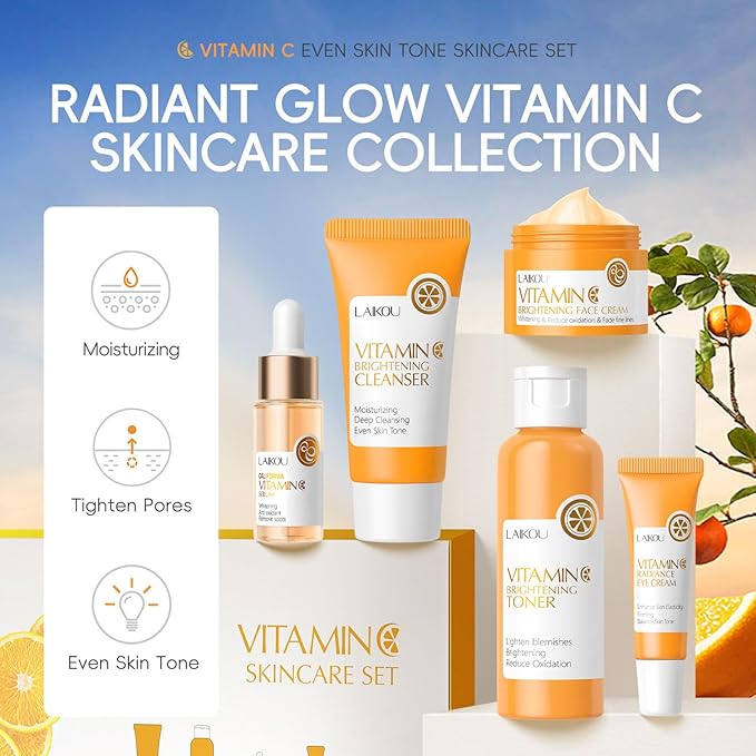 Vitamin C Skincare Gift 5Pcs Set for Teenage Girls, Face Skin Care Kit With Cleanser, Face Serum, Eye Cream, Toner, Face Cream, Travel Skin Care Sets & Kits for Women Men (nomal, 5, Count)