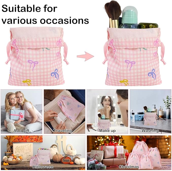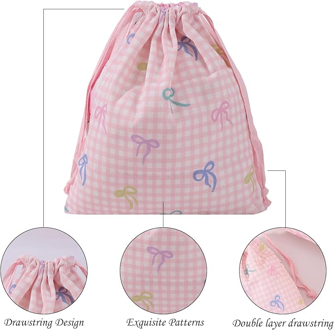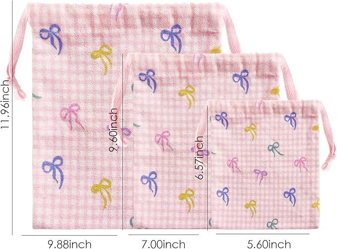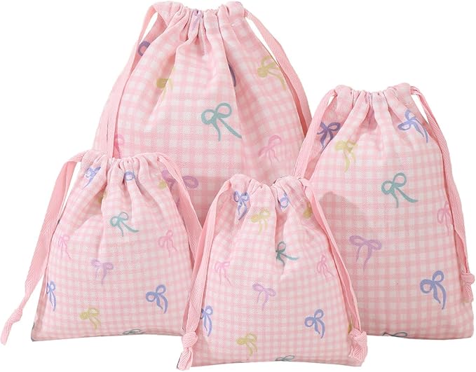 LYDZTION 4pcs Floral Drawstring Makeup Bags Pouches For Purse, Small Canvas Cloth Gift Bags Pouch For Cosmetics Jewerlry Home Travel Storage, Pink Bow