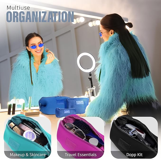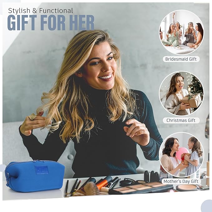 - Durable and Long-Lasting: The neoprene material ensures durability and versatility for modern travel needs and everyday use. Compact and portable cosmetic bag: The sleek design makes it easy to carry your makeup and cosmetics while traveling.