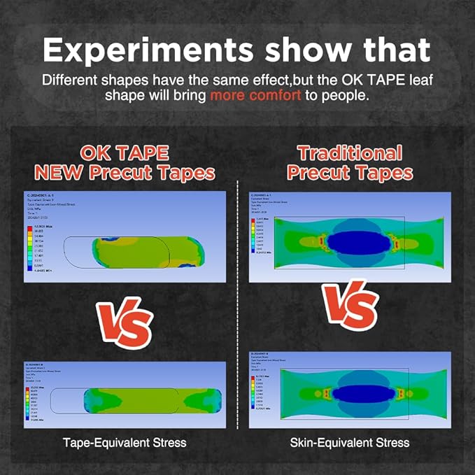- WIDE APPLICATION: OKTAPE synthetic kinesiology tape comes pre-cut for easy application on areas like shoulders, arms, back, knees, thighs, and ankles. The pre-cut design ensures accurate placement for pain relief and prevention. It’s ideal for conditions like back pain, knee pain, shoulder injuries, plantar fasciitis, and more, providing targeted support for effective recovery.