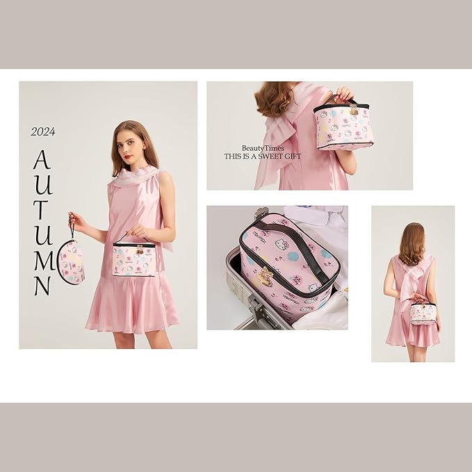 AmBealla Cosmetic Bag Large Makeup Bags Pink Travel Case with Makeup Brush Holder,2PCS Cosmetic Organizer for Women, Toiletry Storage Bag for Skincare & Beauty Tools Sweet Cute for Girls