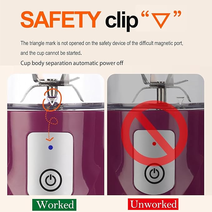 - 【Safety Design】: The portable smoothie maker has a double protection function, when the cup completely fixed in the base to work. In addition, when charging, the machine can not be used, after the end of the charge can be used normally