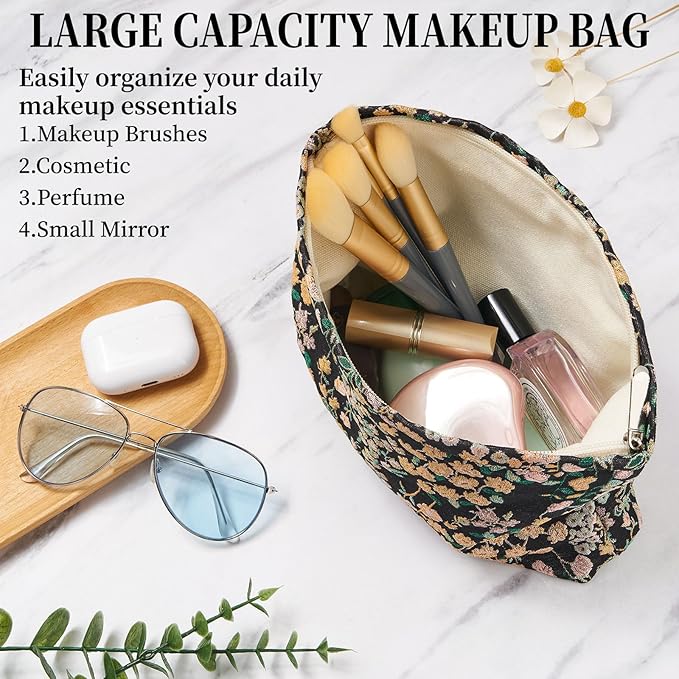 - Durable and Stylish: Made of jacquard fabric, our cute makeup bag are not only durable but also full of fashion sense.The unique floral design makes the medium cosmetic bag more beauty and elegant that will complement your personal style.The sturdy zipper closure design ensures the security of your cosmetics.