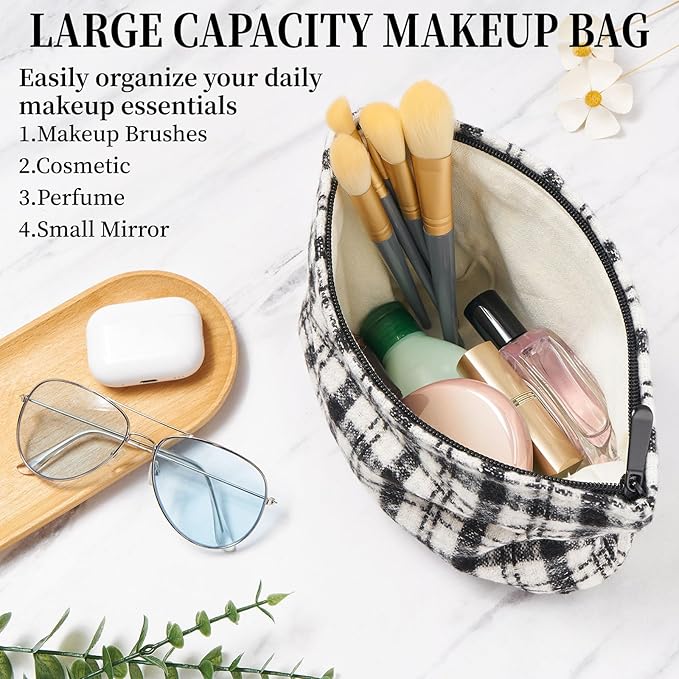 - Durable and Stylish: Made of soft fabric, our cute makeup bag are not only durable but also full of fashion sense.The unique grid design makes the medium cosmetic bag more beauty and elegant that will complement your personal style.The sturdy zipper closure design ensures the security of your cosmetics.