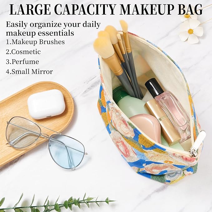 - Durable and Stylish: Made of jacquard fabric, our cute makeup bag are not only durable but also full of fashion sense.The unique painting floral design makes the medium cosmetic bag more beauty and elegant that will complement your personal style.The sturdy zipper closure design ensures the security of your cosmetics.