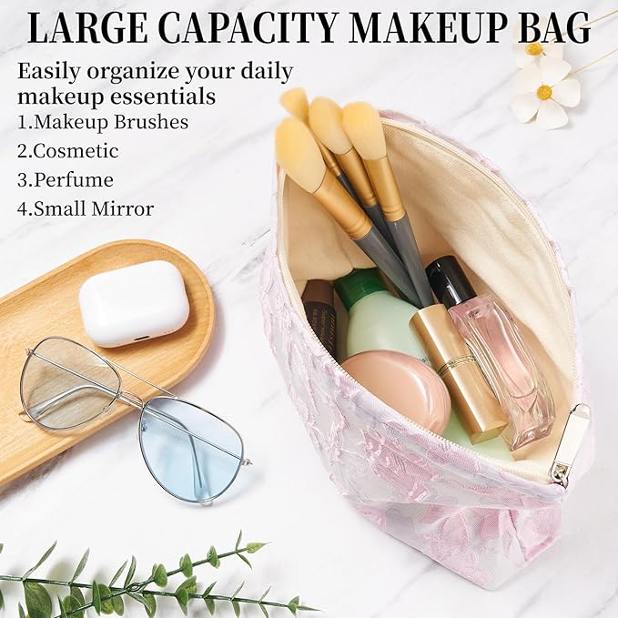 - Versatile and Spacious: Cosmetic bags for women size:9.84*7.08*1.96in(25*18*5cm).Our Makeup Bags for Purse are designed with extra large opening design,easy organize and access,accommodate all your essential cosmetics,toiletries or other travel essentials, making it perfect for going Out,travel or daily use.