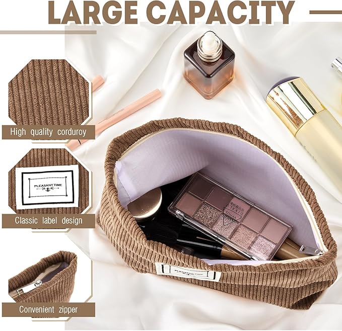 - Large Capacity and Carry Easily: the corduroy makeup bag is about 10 x 7 inches, can accommodate many items, such as lipsticks, makeup brushes, eyebrows, eyeliner, face cream, lipstick, perfume, skincare products and more, convenient for your life; They can be easily stored in purse, backpack, tote bag or suitcase for carry conveniently
