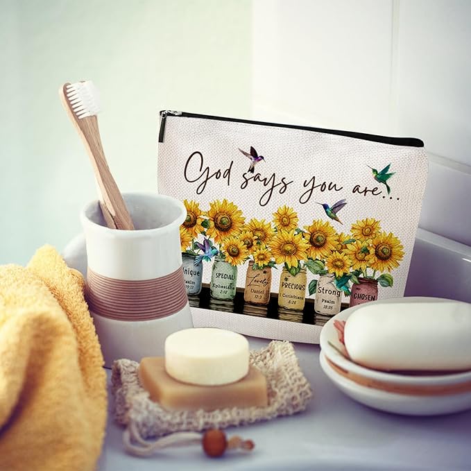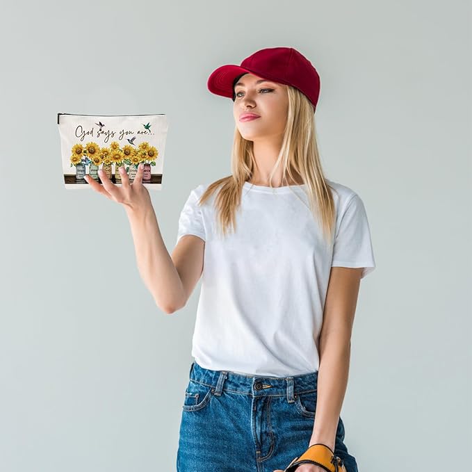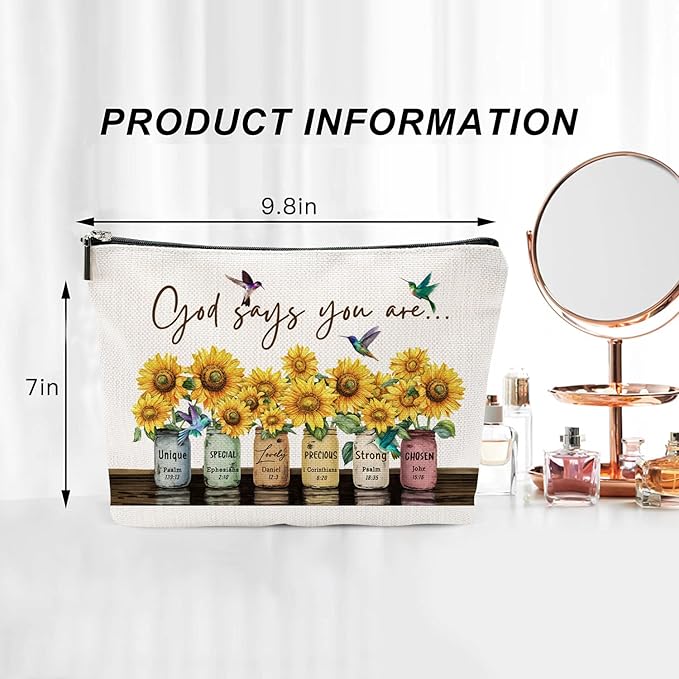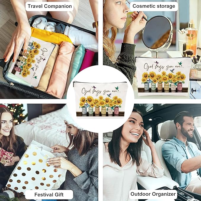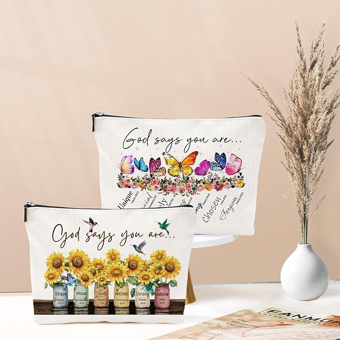 God Says You Are...Christian Gift for Women Inspirational Bible Verse Cosmetic Bags with Zipper Motivational Religious Travel Pouch for Women, Mother, Sister