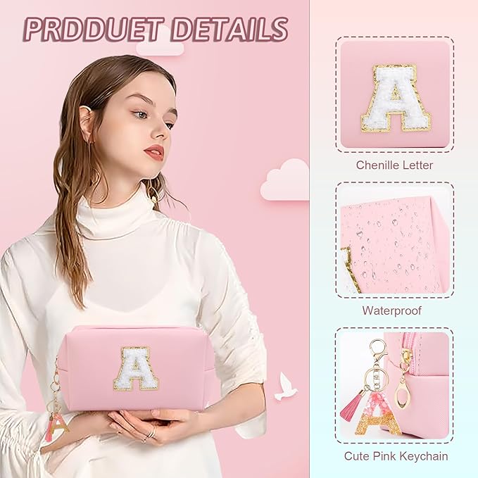 - 【HIGH QUALITY MATERIAL】: The cosmetic bag is made of high quality PU leather, which is not only waterproof and scratch-resistant, but also durable. You can travel with your cosmetics or toiletries in this bag without worrying about damage to your items. The monogrammed metal keychain pull ensures that your belongings are kept safe and organized inside the bag. This makeup bag is also easy to clean and can be easily wiped clean with a damp cloth.