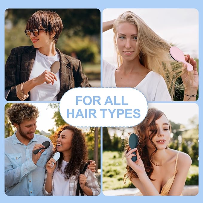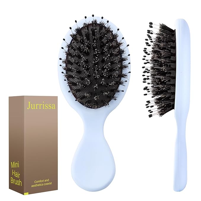 - 【Protable Size】Jurrissa mini hair brush (5.51*2.36 inches) is compact and lightweight,which is protable to carry.Small size can fits in pockets,purses,makeup bag and backpacks.Perfect for travel and on-the-go use