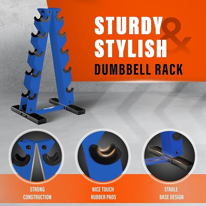 • DURABLE RUBBER PAD: Built with high-quality rubber pad, A frame dumbbell rack emits a pleasant smell during workouts; The rubberized pads prevent dumbbell handles from touching the steel frame, protecting the plating and making it easier to place dumbbells on the rack