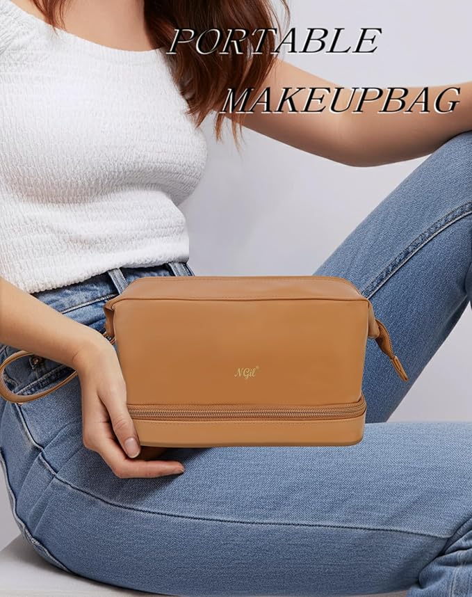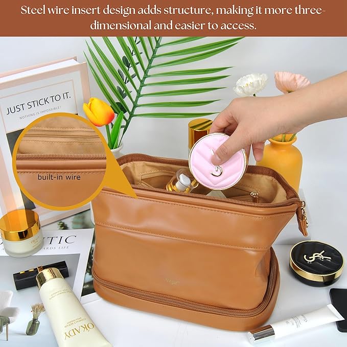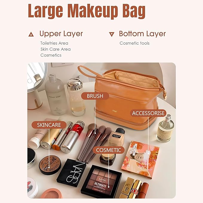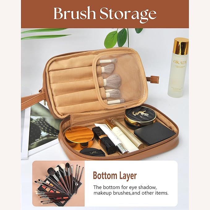 - UNIQUE DESIGN: This bag features two storage sections, with the bottom serving as a dedicated makeup organizer. Eyeshadows, makeup brushes, and other essentials are stored separately, keeping everything clean and tidy.