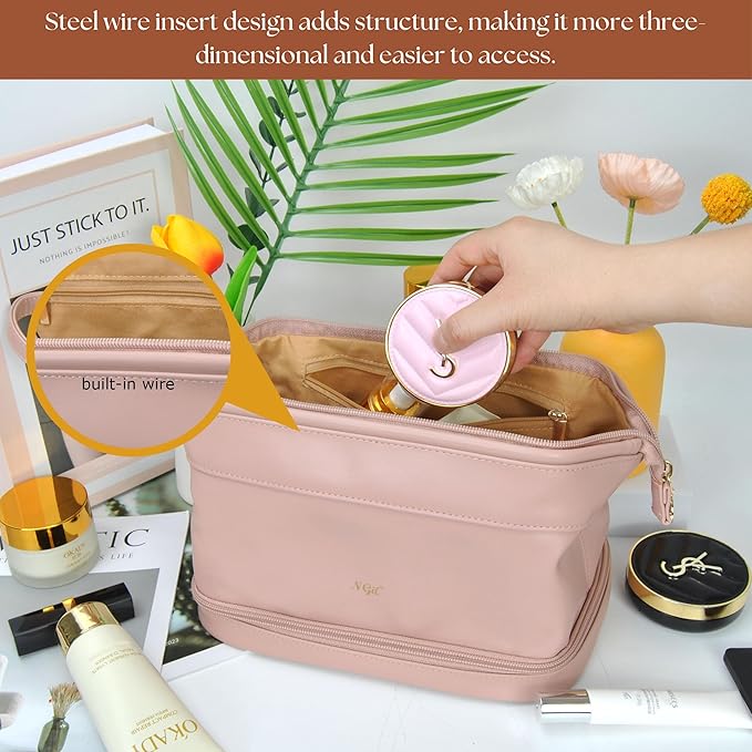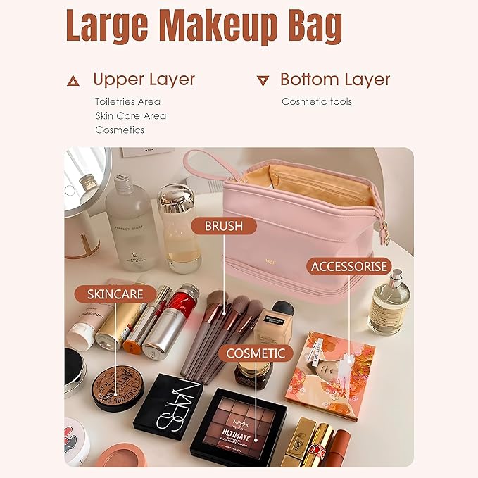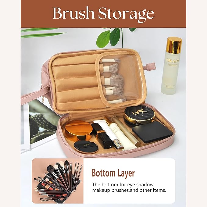 - UNIQUE DESIGN: This bag features two storage sections, with the bottom serving as a dedicated makeup organizer. Eyeshadows, makeup brushes, and other essentials are stored separately, keeping everything clean and tidy.