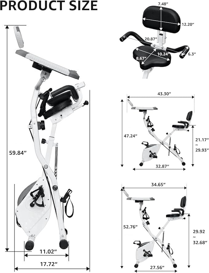 - KEY FEATURES - (1) Our training bike is designed to accommodate riders from 4'11" to 6'6" in height, with a maximum weight capacity of 330lbs. (2) The foldable design allows for compact storage, and the built-in wheels ensure easy transportation. (3) Equipped with an LCD display, this bike tracks essential metrics such as time, speed and calories burned. In addition, it features a convenient phone holder for entertainment during workouts.
