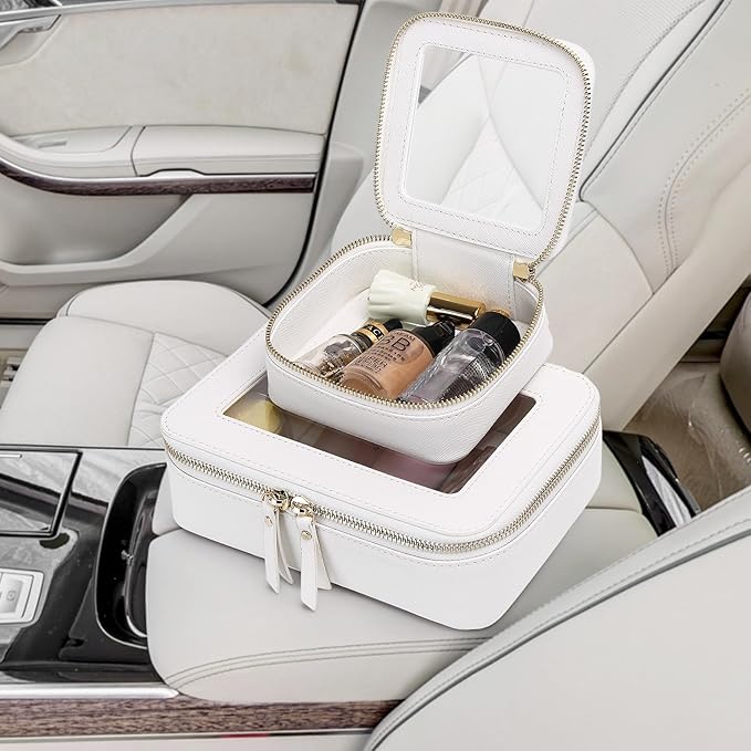 Small Makeup Bag Mini Clear Cosmetic Makeup Case & Toiletry Bag with Zipper Women's Purse Organizer & Car Essentials (White, MINI-3)