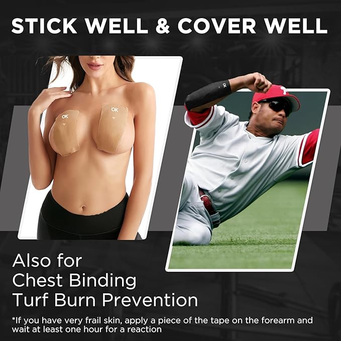 - MULTIPURPOSE: Can be used to bind chest or lift larger breast; Protect skin from burns and abrasions for football or baseball players; Cut to smaller patches to cover sensors or tattoos