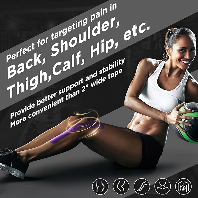 - 2X WIDER: The extra wide tape provides a broader coverage area, making it ideal for larger muscle groups or joints that require extensive support and stability