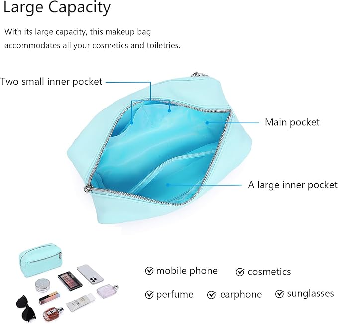 - 【Premium Material】This cosmetics bag is made of nylon, which is sturdy and durable, and is easy to clean. The zipper is made o good hardware materials,strong and easy to pull. All seams are double reinforced for ultra high strength.