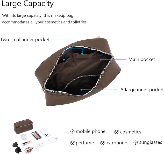 - 【Premium Material】This cosmetics bag is made of nylon, which is sturdy and durable, and is easy to clean. The zipper is made o good hardware materials,strong and easy to pull. All seams are double reinforced for ultra high strength.