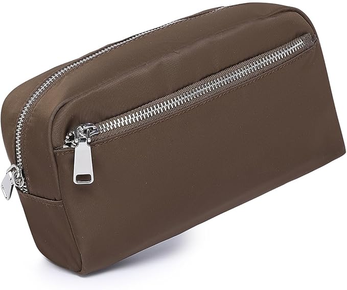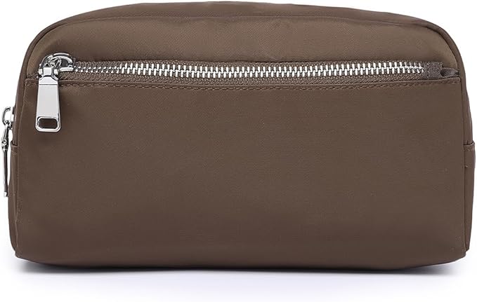 Nylon Female cosmetic bags Canvas toiletry bags Wash bags with large capacity Simple design (Nylon/Brown)