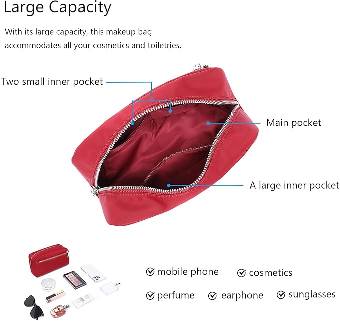 - 【Premium Material】This cosmetics bag is made of nylon, which is sturdy and durable, and is easy to clean. The zipper is made o good hardware materials,strong and easy to pull. All seams are double reinforced for ultra high strength.