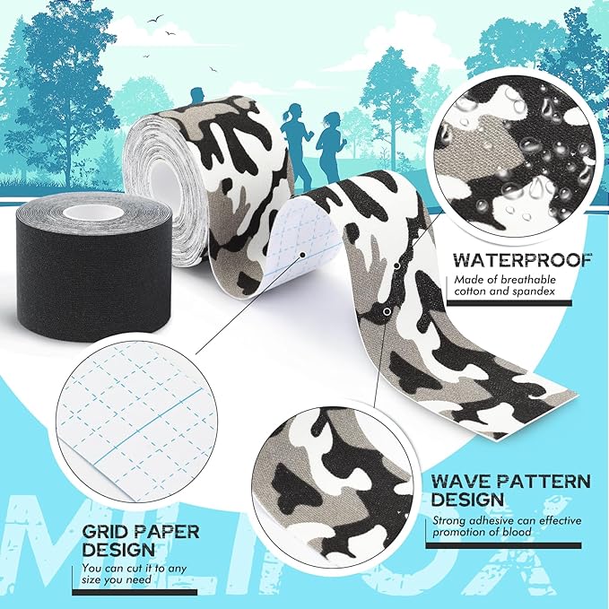 - Skin friendly: Our athletic tapes doesn't contain latex to reduce skin irritation. It is breathable and soft, you can use these sports tapes anywhere on any part of the body. These kinetic tape roll provide support for muscles to prevent strains, and can be easily removed. Ideal for running and sports activities tapes