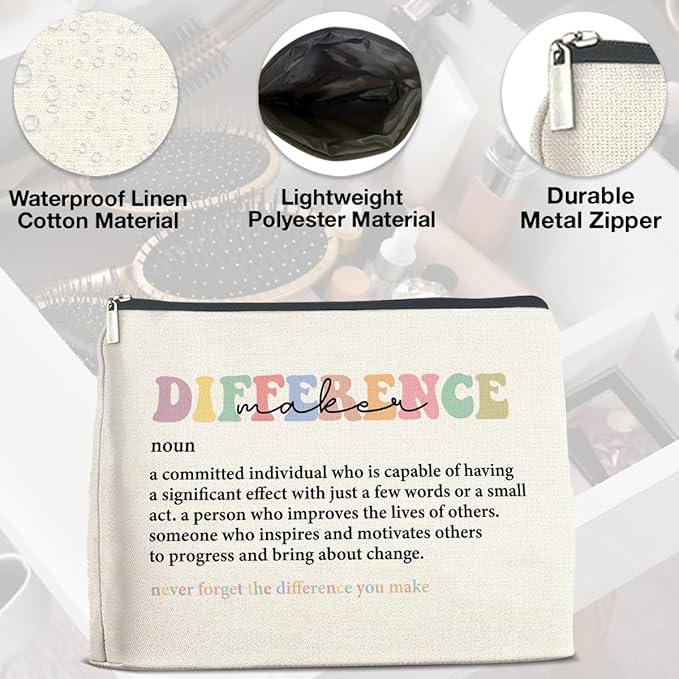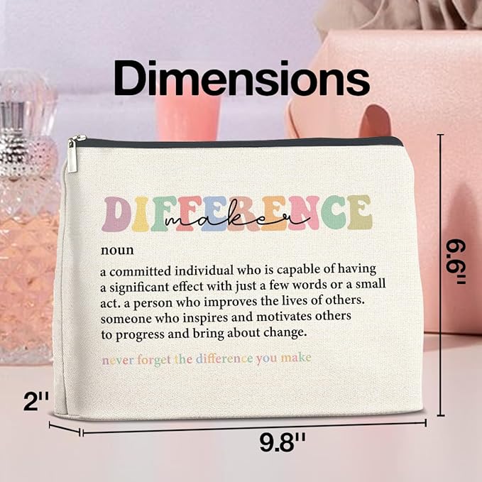 Difference Maker Makeup Bag Thank You Gifts for Mentor Leader Coach Boss Manager Leaving Retirement New Job Going Away, Difference Maker Gifts Cosmetic Bag Zipper Makeup Pouch