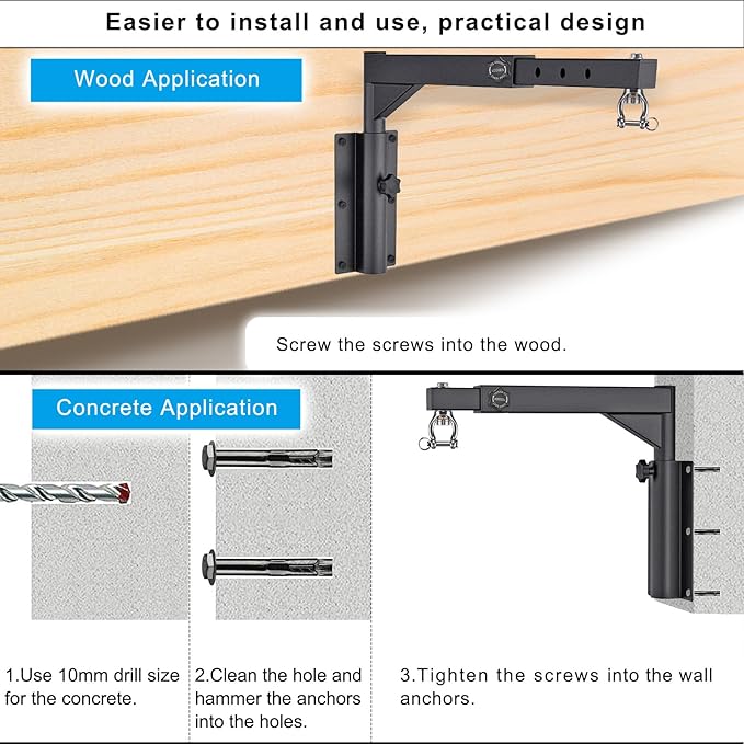 - Easy and Secure Installation: Say goodbye to complicated installations and unstable supports. Our wall mount comes with 6 wood screws and 6 expansion sleeves, making it easy to attach to concrete wall brackets or wooden beams. Additionally, the base features 6 holes for added stability and security, ensuring a safe and hassle-free workout session