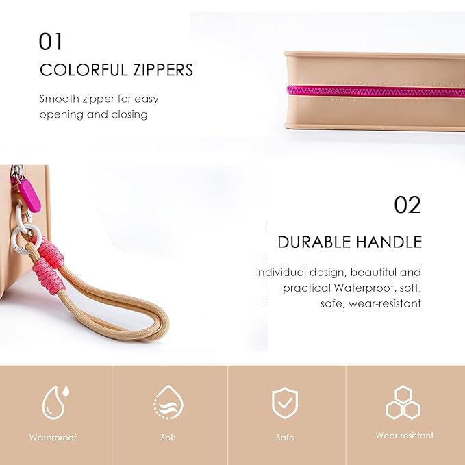 - 【High-quality Silicone Material & Safe Protection】: This travel makeup pouch is made of high-quality silicone material, which is known for its extraordinary softness, long-lasting durability and waterproof performance. This cosmetic bags for women can effectively buffer potential damage to items such as collisions and scratches, and play a role in protecting items inside and outside the handbag.