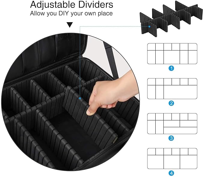 - PROFESSIONAL MAKEUP CASE: You can design yourself internal compartments by the adjustable padded dividers.