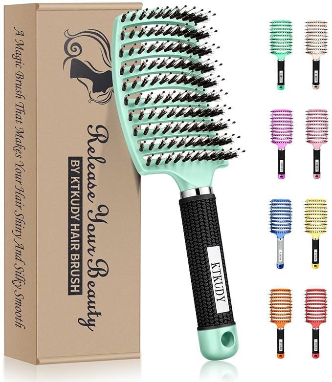 KTKUDY Detangling Brush Boar Bristles Hair Brush Make Hair Shiny & Healthier Curved and Vented Detangler Brush for Women Men Kids Wet and Dry Hair (Turquoise)